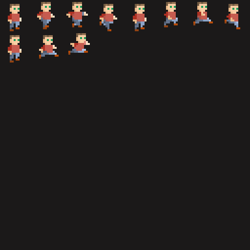 spr_character = SpriteSheet('spriteSheet1.png', 16, 16, 8, 8, 11) #load Sprite Sheets
