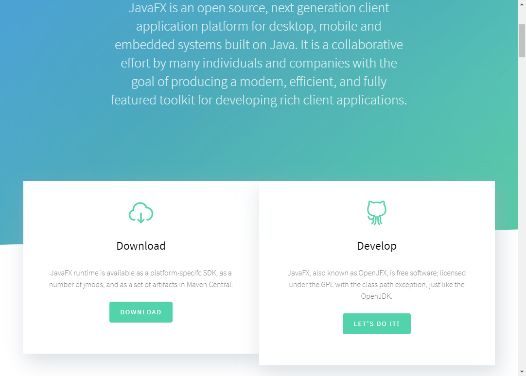 Long Term Support JavaFX 11 is the first long term support release of JavaFX by Gluon. For commercial, long term support of JavaFX 11, please review our JavaFX Long Term Support options. The JavaFX 11 runtime is available as a platform-specific SDK, as a n