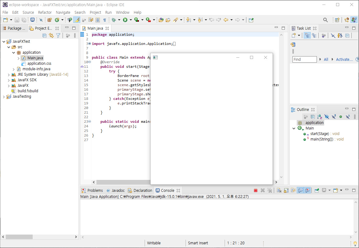 자바 FX를 사용하기위해 이클립스 마켓플레이스에서 e(fx)clipse 를 설치했다.
