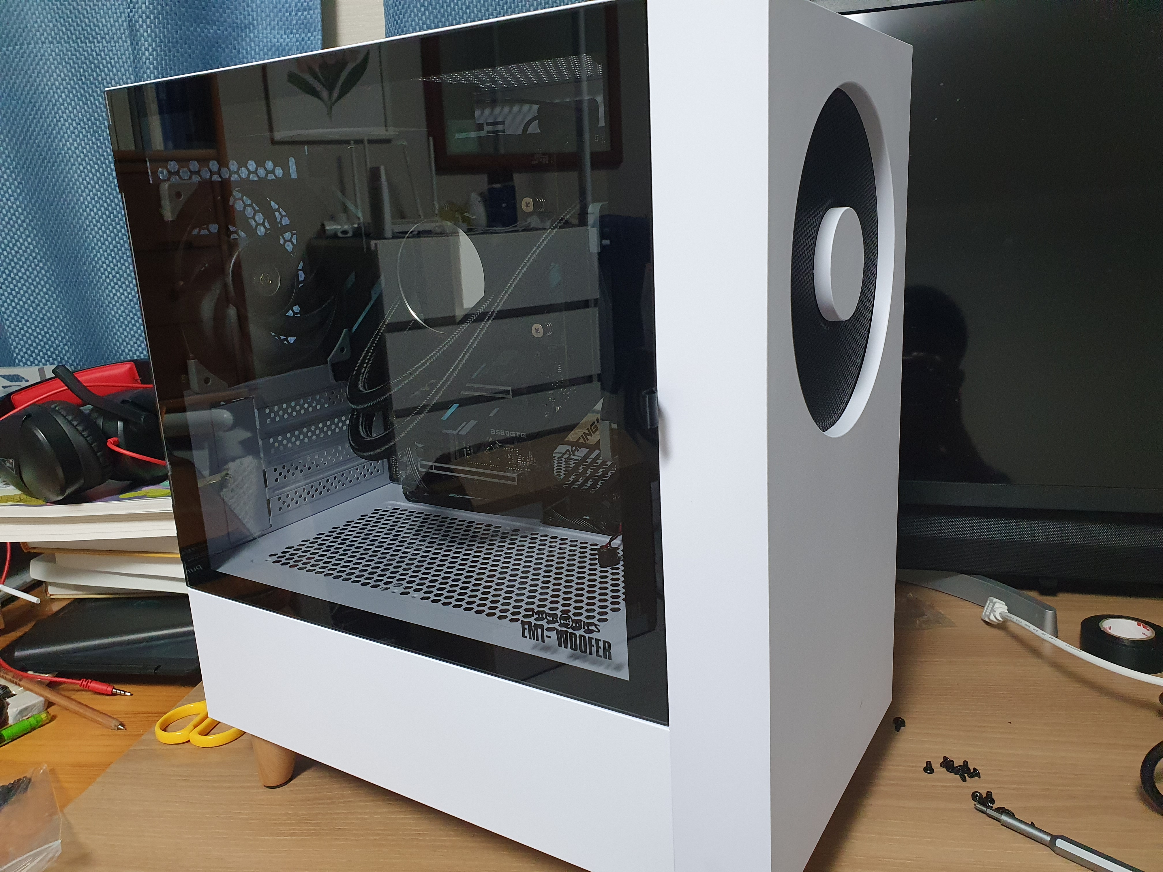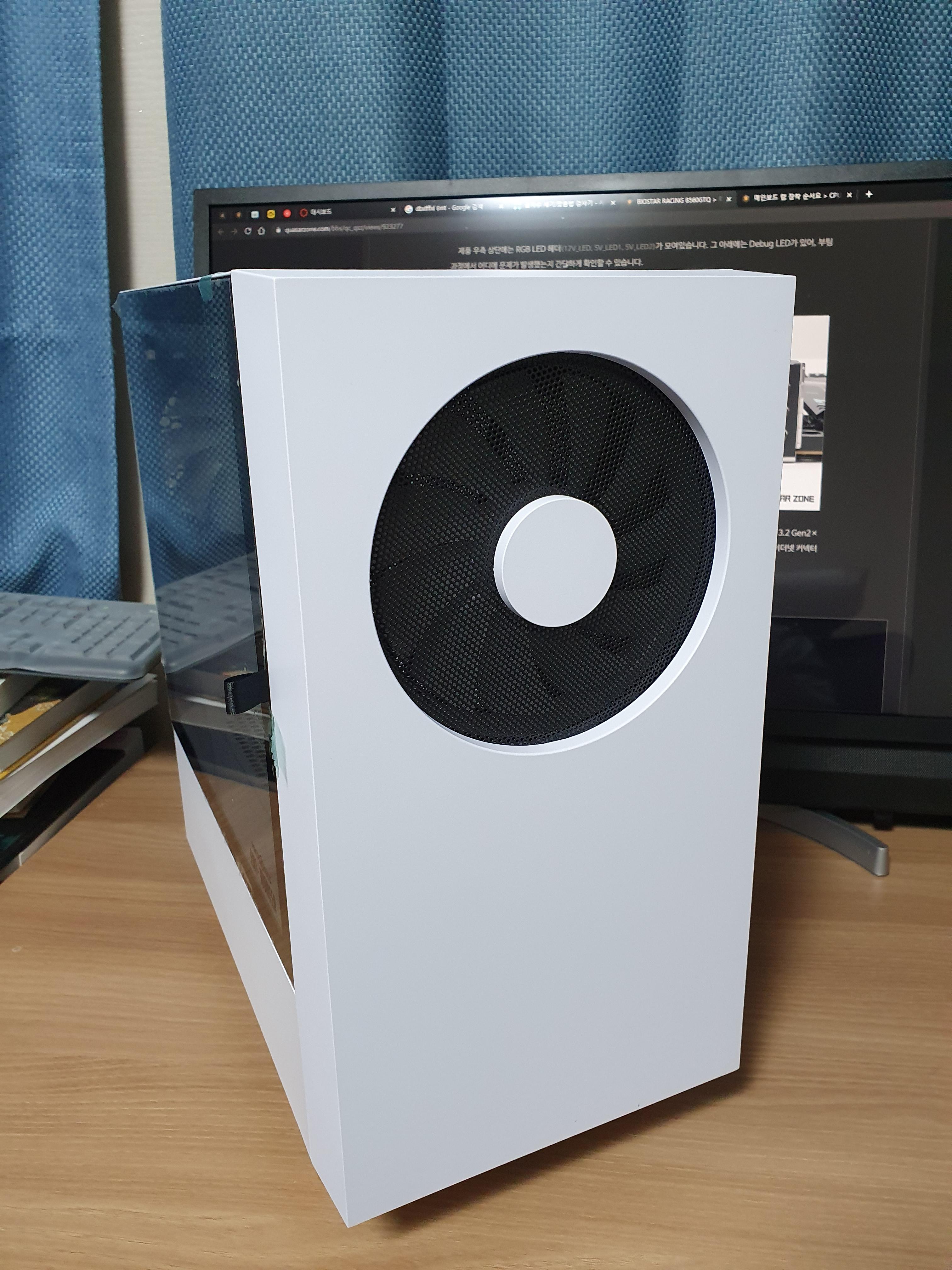 그래서 한~~참을 고민을 한 결과 그나마 간섭이 없는(램 간섭이라 어쩔수가 없었습니다) 전면에다 팬을 하나만 단 채로 조립을 했어요..ㅠ
