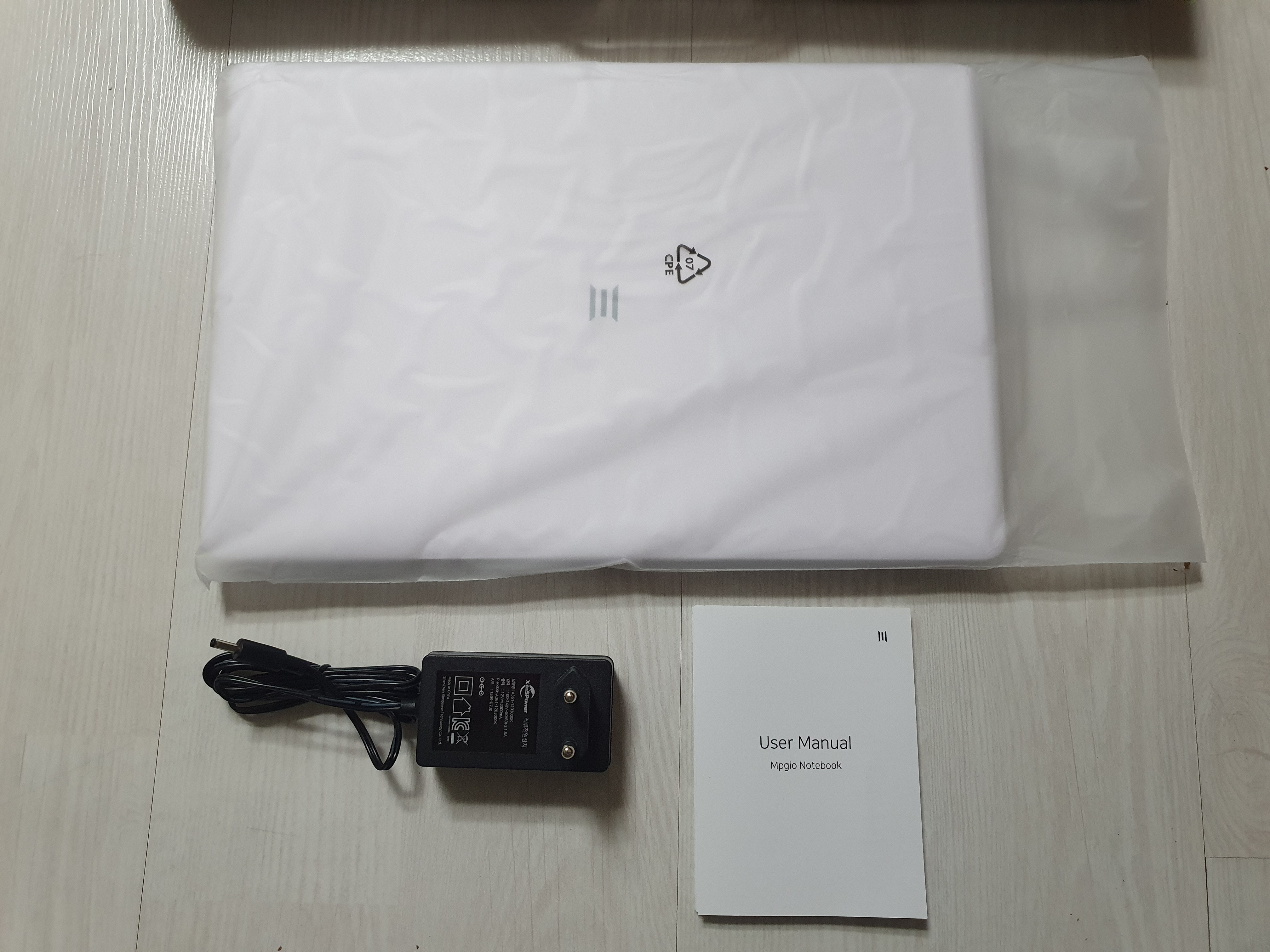 노트북 본체와 충전기 그리고 메뉴얼 하나. 단가를 맞춘다고 최소한의 필요한 것들만 넣은 듯 했다.