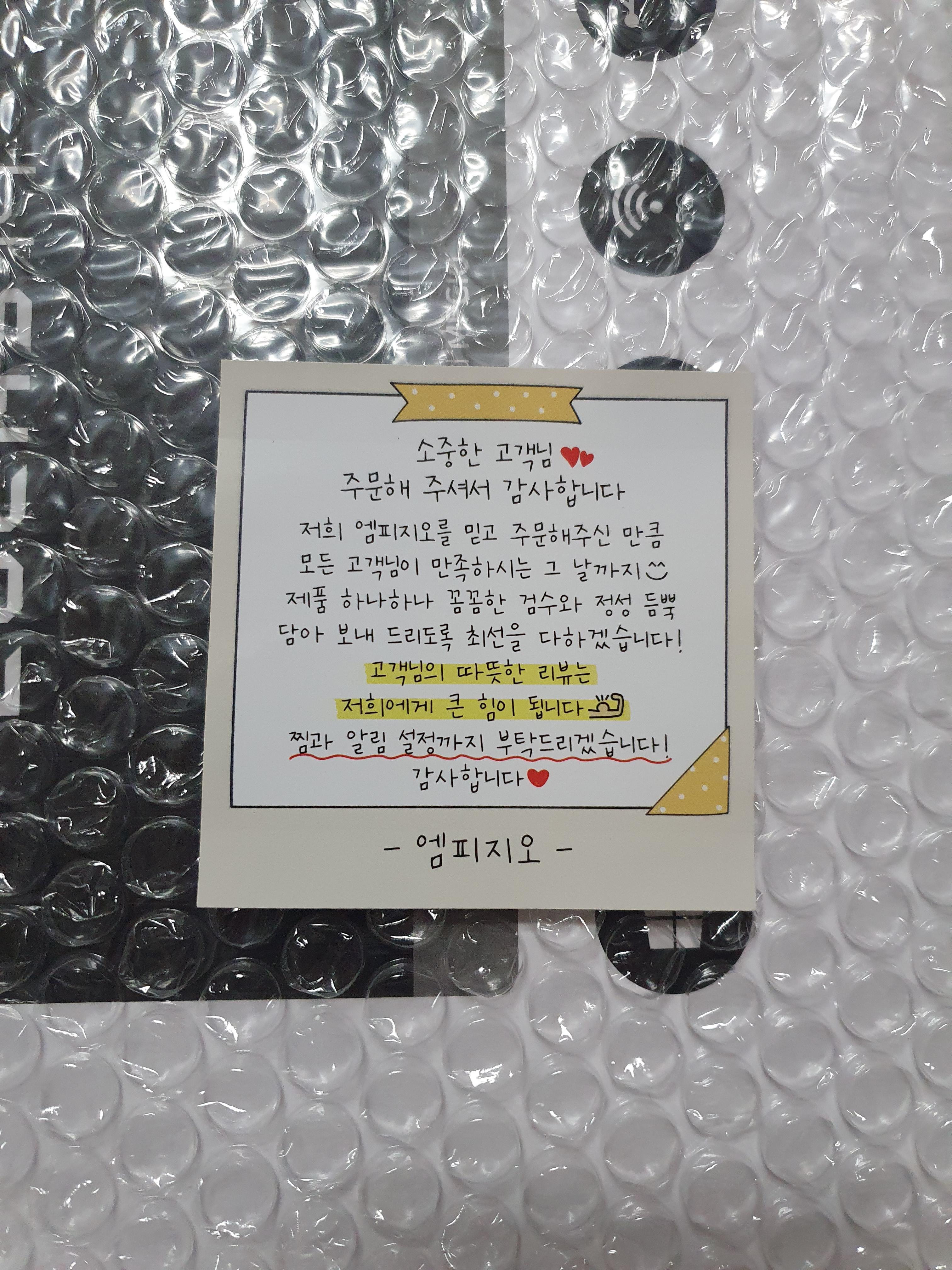 아래는 배송 온 패키지 박스에 붙어있던 포스트잇이다.