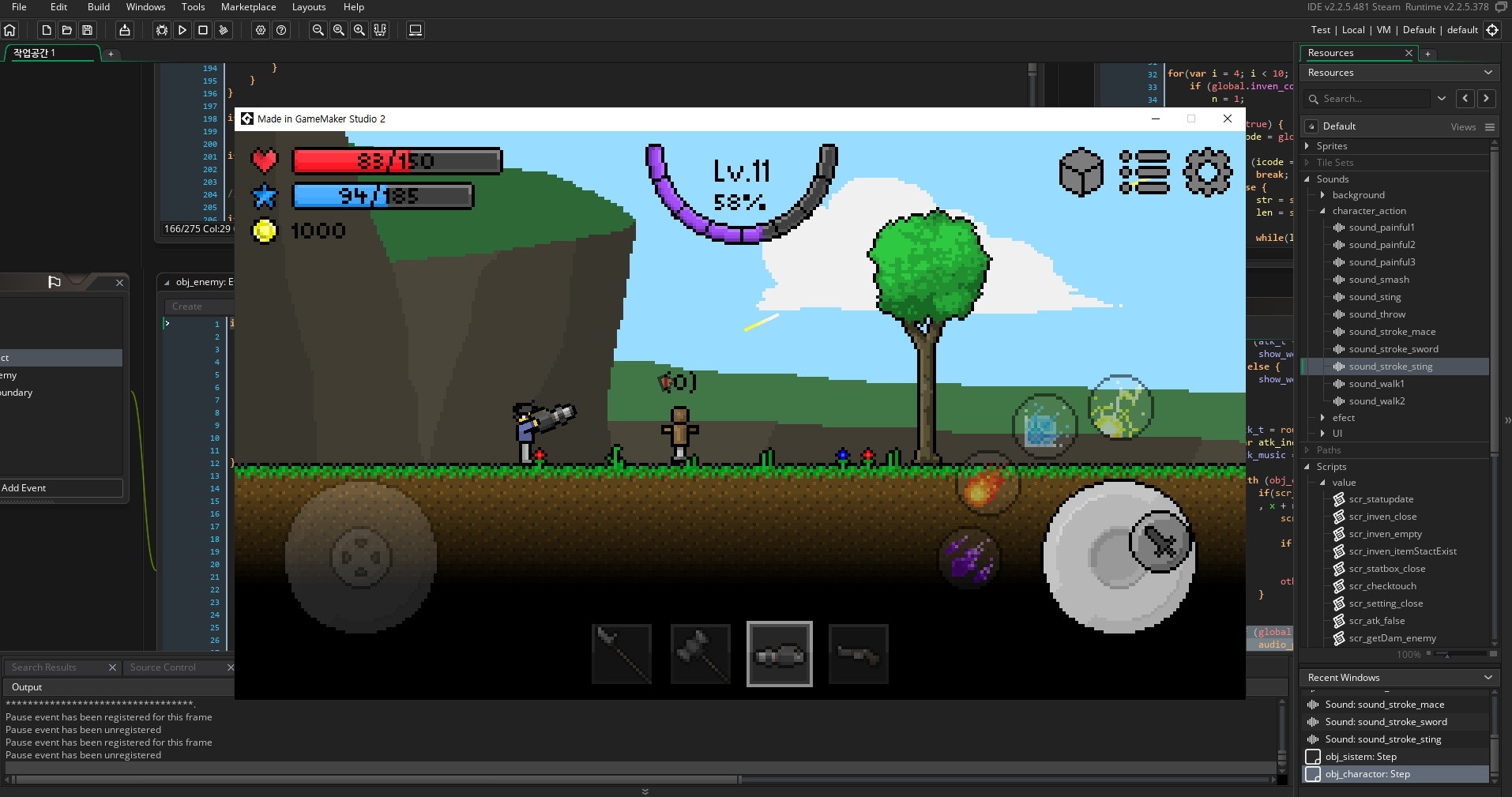 이전에 개발중이라고 말씀드렸던 스킬북으로 스킬들을 장착하는 시스템은 원인불명의 에러에 부딛혀 아직 준비 중입니다. 다음 일지에서는 꼭 스킬들을 갈아 끼울 수 있도록 노력하겠습니다!