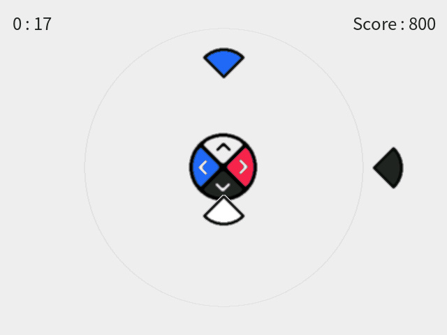 가운데 원을 회전시켜 사방향에서 날아오는 부채꼴들을 원의 색과 형태에 일치시키면 점수를 얻는 형식의 게임입니다!